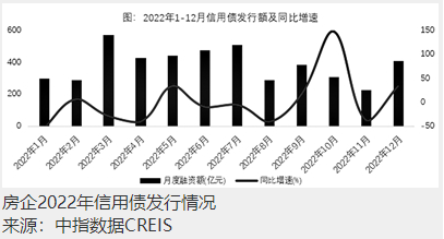 中指研究院近日公布的數(shù)據(jù)顯示,2022年12月,民營(yíng)房企發(fā)債規(guī)模達(dá)到96.3億元,占全年民營(yíng)房企信用債發(fā)行量的35.5%,發(fā)行主體也從頭部?jī)?yōu)質(zhì)民企擴(kuò)展到中小型民企。從房企全年單月融資情況來(lái)看,3月為年度融資高峰,總量超過(guò)千億規(guī)模。下半年,8月、11月均有融資利好政策釋放且快速落地,因此隨后房企融資額小幅回升。其中,優(yōu)質(zhì)民營(yíng)房企信用債發(fā)行在9月、12月分別出現(xiàn)兩個(gè)小高峰。特別是融資利率方面,受2022年內(nèi)多次降息、信貸環(huán)境相對(duì)寬松、信托融資規(guī)模下降等多重因素影響,房地產(chǎn)行業(yè)平均融資成本明顯下降。