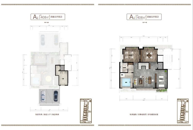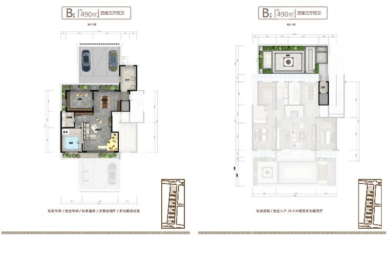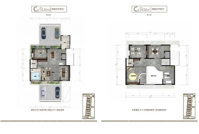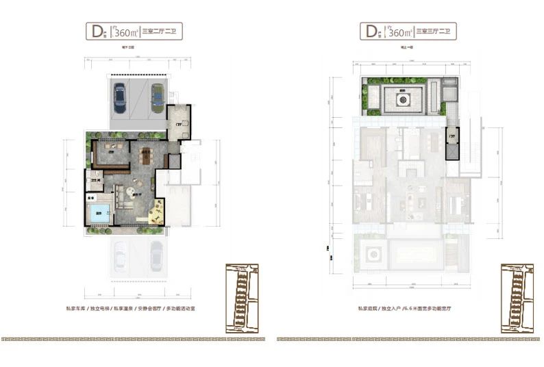 地下室設計不同于傳統(tǒng)地下室,只能為儲藏室使用,而小區(qū)地下室層高和地上建筑面積層高一致,達到了3.2米,沒有空間壓抑感,在南北庭院都設有1.2米的通風采光井,室內鋪設地暖及溫泉管道,上下水和衛(wèi)生間,私密性特強,可以設計桑拿房,健身房,保姆間,洗衣房,酒窖及休閑娛樂等多功能區(qū)域,對于鄰居既不會產(chǎn)生噪音干擾,更不會打擾到家人的休息,在提高了生活品質的同時也不會由空間局促感,地下室可以直通地下私家車庫,車庫層高4.2米,寬約7-10米,至少可以容納家用汽車三輛。