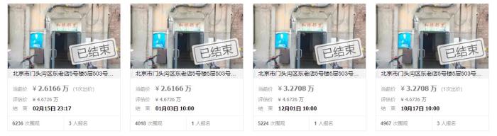 據(jù)阿里資產(chǎn)·司法平臺顯示的信息,北京市門頭溝區(qū)東老店5號樓5層503號(2%份額)在幾天前結(jié)束了拍賣,最終以26166.6元的價(jià)格被拍下。