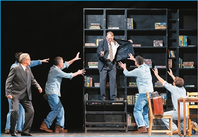 這對(duì)柯雅各是個(gè)難題。雖然他從小喜愛(ài)表演,但他平時(shí)主要從事企業(yè)管理,此次是他首度出演大型話劇。他由衷感謝張國(guó)立,因?yàn)閺垏?guó)立每天必到排練場(chǎng),從一個(gè)眼神到一場(chǎng)對(duì)手戲,仔細(xì)指導(dǎo)他,經(jīng)常親自示范?!澳苷崭麑W(xué)習(xí),如同在上一堂大師課。”柯雅各說(shuō),“演話劇后我才理解,這部劇最大的亮點(diǎn)不是安迪越獄成功、解救了自己,而是他用自己身上的希望之光照亮他人。導(dǎo)演也是在身體力行地照亮我們?!?/p>