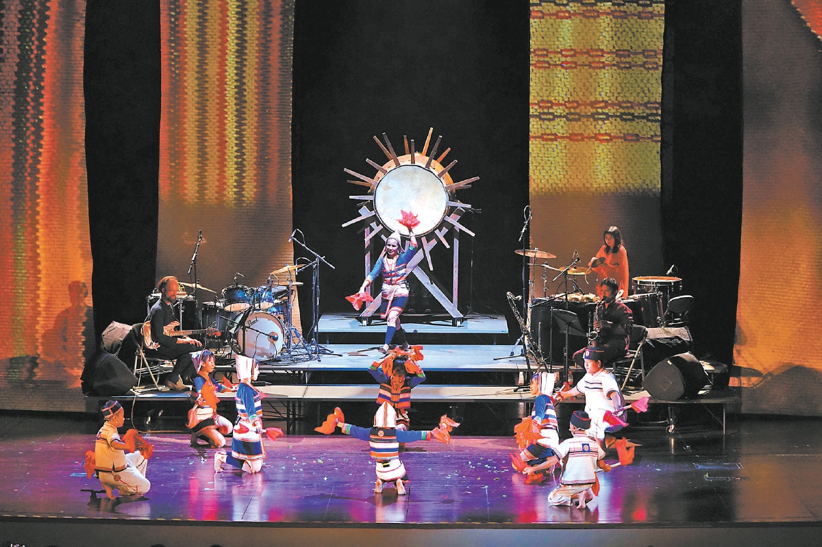 10月12日晚,一場(chǎng)將云南深山原始生命力融合跨越時(shí)空藝術(shù)想象力的演出登上北京舞臺(tái)。作為第二十八屆北京國(guó)際音樂節(jié)的重磅演出之一,由普利策音樂獎(jiǎng)得主、華人作曲家杜韻傾力創(chuàng)作,北京國(guó)際音樂節(jié)與美國(guó)林肯中心聯(lián)合委約的音樂劇場(chǎng)作品《刻在森林的?!吩诒本┫矂≡菏澜缡籽荨碜栽颇衔麟p版納的非遺項(xiàng)目基諾族大鼓舞傳承人何桂英,帶領(lǐng)8位基諾族少年,在舞臺(tái)上敲響大山里特有的聲音。