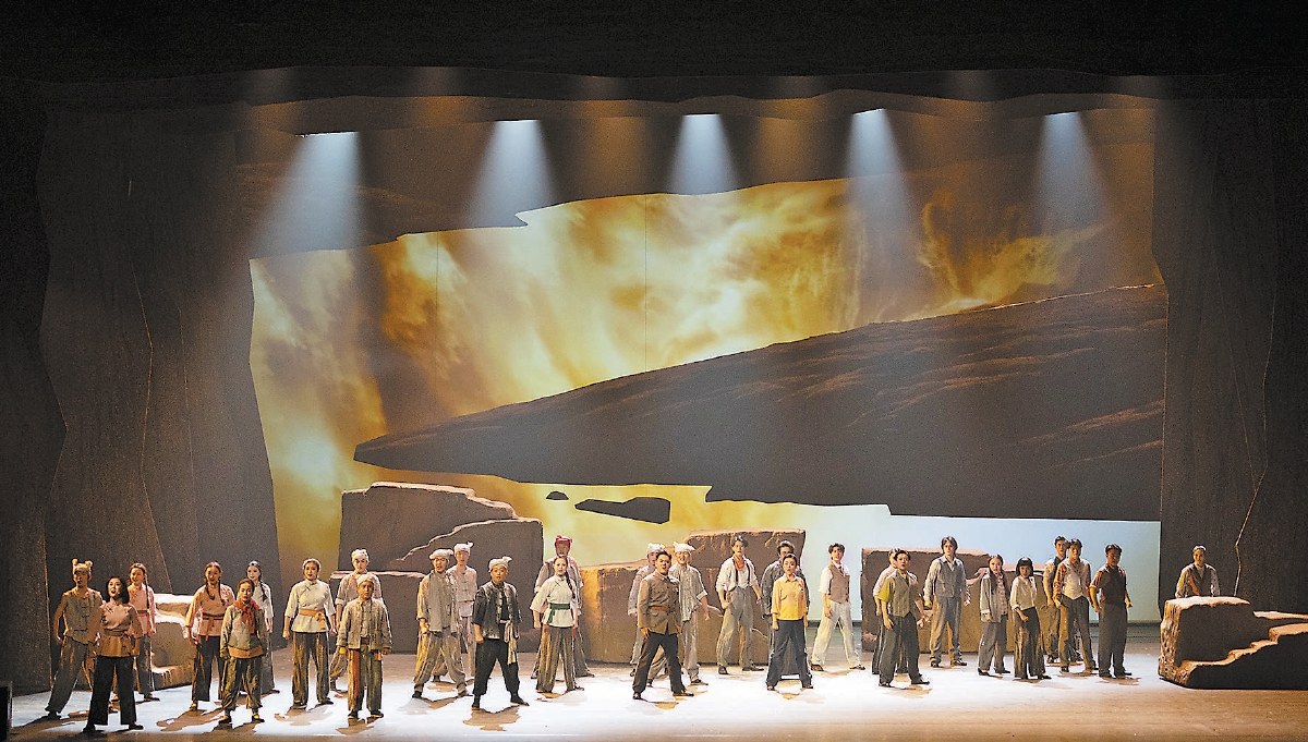 “我是哪一個,你會看見我,對著天空呼喊,用生命高歌?!?1月21日晚,隨著“大戲看北京”2025展演季精品大戲單元劇目——音樂劇《高歌》在保利劇院首場演出落幕,觀眾與演員一同輕聲哼唱起來。這部由中國東方演藝集團與榆林市榆陽區(qū)人民政府聯(lián)合出品的音樂劇,將觀眾帶到1944年的陜北,在陜北民歌與流行、搖滾音樂的融合碰撞中,回望那段崢嶸歲月,收獲滿滿感動。