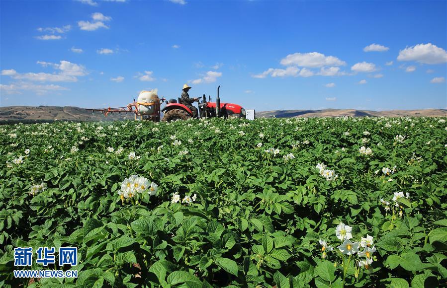 盛夏時節(jié),中國馬鈴薯之鄉(xiāng)甘肅定西的馬鈴薯進(jìn)入開花期,眾多白色的花朵扮美田野。 新華社發(fā)(陳永剛 攝)