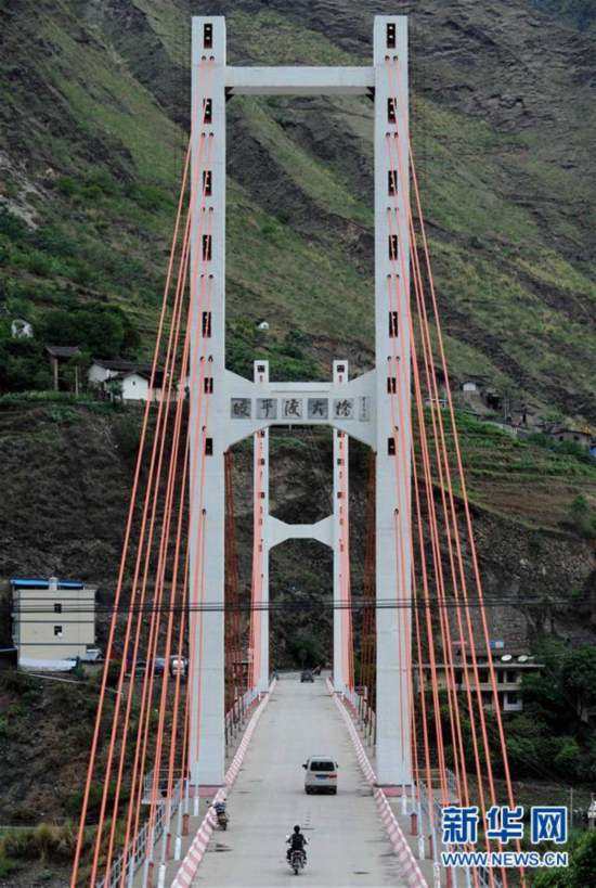 位于云南祿勸縣與四川會(huì)理縣交界處金沙江上的皎平渡大橋(2011年6月15日攝)。1935年5月,紅一方面軍在36名船工的幫助下,勝利渡過(guò)了金沙江,擺脫了國(guó)民黨軍隊(duì)的圍追堵截,取得了戰(zhàn)略轉(zhuǎn)移中具有決定意義的勝利。 “紅軍不怕遠(yuǎn)征難,萬(wàn)水千山只等閑?!遍L(zhǎng)征譜寫了一曲人類征服自然的凱歌,峽谷激流、雪山草地、物資匱乏、生命禁區(qū),這一切都不能阻擋紅軍前進(jìn)的步伐。80年過(guò)去,滄海桑田,紅軍長(zhǎng)征走過(guò)的荒郊野嶺,如今樓宇林立,欣欣向榮;徒步翻越的大山、攻克的關(guān)隘、沼澤遍布的草地、泅渡的河流,修起了通暢快捷的公路和大橋……長(zhǎng)征之路發(fā)生了翻天覆地的變化,昔日的艱難險(xiǎn)阻正漸漸變成康莊通途。新華社記者藺以光攝