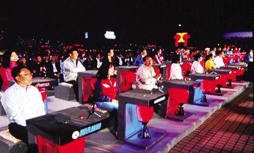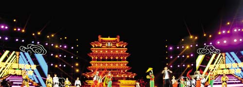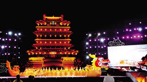 競演最后,一條巨龍騰空而起,象征著我市文化旅游產業(yè)像一條騰飛的巨龍,抬龍頭、挺龍胸、舞龍身、活龍水。