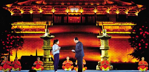 作為主場的運城市,用絳州鼓樂這一傳承千年的世界級非物質文化遺產開場,電視連續(xù)劇《三國演義》關公扮演者陸樹銘威嚴亮相,以關公形象表達運城歷史傳統(tǒng)文化。