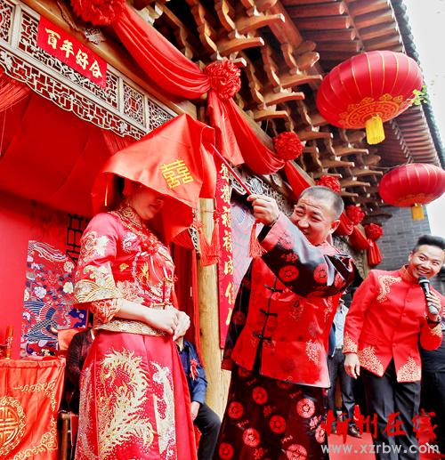 “現(xiàn)在越來越多的新人喜歡中國風(fēng)婚禮?!丙悓毼幕瘋髅接邢薰净槎Y策劃人王麗江感嘆道。