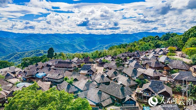航拍云南景邁山“千年布朗古寨”。人民網(wǎng) 虎遵會攝