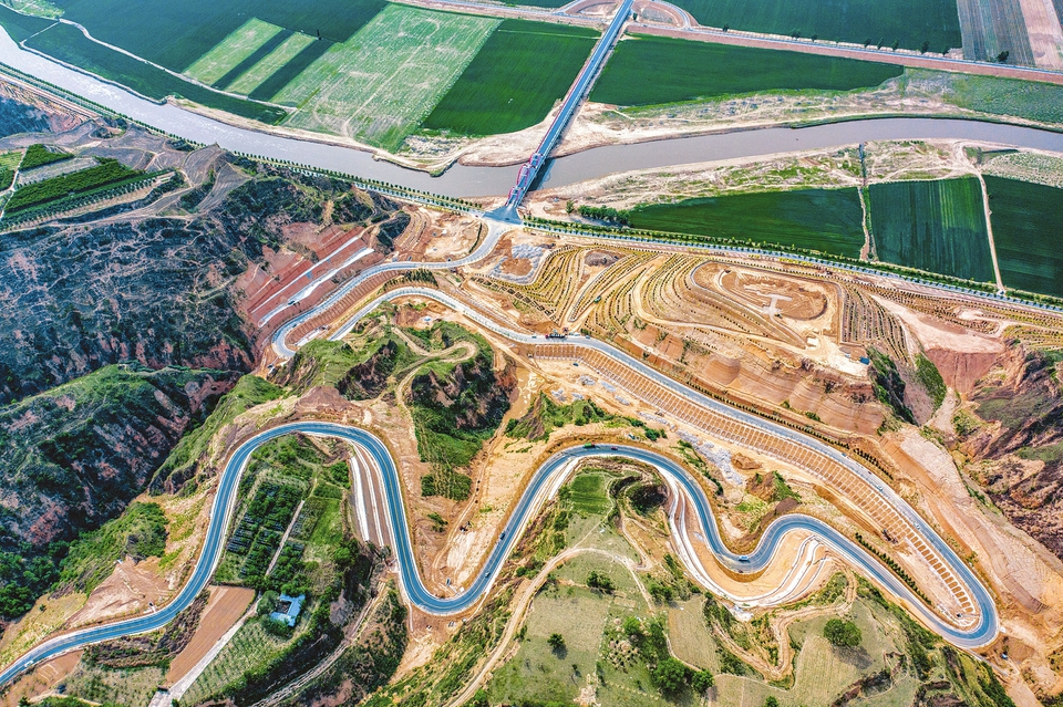 這是5月15日拍攝的萬榮縣裴莊鎮(zhèn)境內(nèi)的寺后至萬榮黃河一號旅游公路連接線。該路段是萬榮縣沿黃旅游公路(第四部分)一支線工程,長3.2公里,寬8.5米,目前主體工程已經(jīng)完工,達(dá)到通車條件。項目建成后,將完善黃河沿線區(qū)域路網(wǎng),連接省道小風(fēng)線與沿黃旅游公路,串聯(lián)沿線各個旅游景點,對帶動萬榮沿黃旅游業(yè)的發(fā)展有著重要作用。