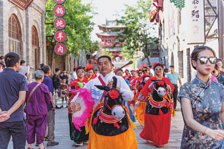 輕煮時(shí)光慢煮茶,三五好友聚一堂,在美食云集的小吃街,品一品忻州雜糧美食,擇一處院落嘗一嘗農(nóng)家樂(lè)的特色滋味。在茶樓聽(tīng)?wèi)虼蚺啤⒄勑︼L(fēng)生,各路好戲連連上演,帶著邊塞風(fēng)骨,唱得淋漓盡致。著一席漢服漫步街巷,無(wú)須矯揉造作,也無(wú)須刻意擺拍,一顰一笑皆入畫,綠意的古城總有一種風(fēng)景值得駐足。剪紙、面塑、陶藝……集結(jié)忻州非遺傳承人,復(fù)蘇古城記憶,老忻州的手作與現(xiàn)代文創(chuàng)在這里交融扎根,民間藝術(shù)在這里生生不息。忻州古城的市集生活總上演著不同的精彩,新潮好玩的潮樂(lè)市集、紅火熱鬧的南門市集、充滿故事的古玩市集,在這里可以邂逅心頭好物,遇見(jiàn)不同的生活與態(tài)度。