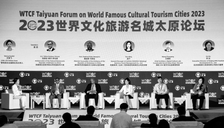 太原論壇設(shè)置“市長談世界文旅名城建設(shè)”主旨發(fā)言、《旅游城市文化品牌建設(shè)與形象傳播報(bào)告》發(fā)布、“文明交流互鑒與世界文旅名城建設(shè)”特別論壇、“文化品牌建設(shè)與文旅產(chǎn)業(yè)發(fā)展”主題發(fā)言、旅游交易洽談會等活動。來自國內(nèi)外的文旅大咖圍繞文旅產(chǎn)業(yè)發(fā)展進(jìn)行探討,為提高城市旅游經(jīng)濟(jì),打造城市形象,建設(shè)各美其美、美美與共的旅游城市發(fā)表真知灼見?,F(xiàn)場,太原市委副書記、市長張新偉與部分嘉賓圍繞“市長談國際文旅名城建設(shè)”和“文明交流互鑒與世界文旅名城建設(shè)”主題發(fā)言。