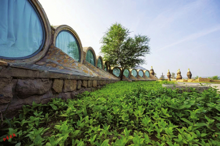 利用碾盤、碑頭等舊石刻和礦山廢機(jī)具打造景觀藝術(shù)作品數(shù)百件;將“煤改電”后廢棄的鍋爐房,創(chuàng)新改造為云岡圖書館并面向社會(huì)開放;用廢棄水泥塊和各種舊磚塊、舊石雕,修建了頗具歐式風(fēng)格的云岡文保大樓圍墻,尤其是由城市廢舊地下排水管等材料打造成的一排排蝸牛公寓格外引人注目。蝸牛公寓頂棚上安裝的一個(gè)個(gè)圓形玻璃窗,是用篩煤設(shè)備改造成的,上面鋪設(shè)的太陽能發(fā)電板,在自給自足的同時(shí)還可向景區(qū)供電。蝸牛公寓聯(lián)排房間均是由廢棄管道改造成的,大廳內(nèi)有會(huì)客廳、洗漱池、公廁等設(shè)施,地下則利用原有礦山廢棄菜窖改造成放映室、酒吧、餐廳等。蝸牛公寓不遠(yuǎn)處還有用廢舊鍋爐改造而成的膠囊公寓,在綠草叢中別有風(fēng)趣。這些建筑極大地豐富了云岡文化內(nèi)涵,開創(chuàng)了全國首家世界遺產(chǎn)地利用固體廢物營造景區(qū)景觀的新路,對(duì)大同市乃至全國景區(qū)生態(tài)環(huán)境保護(hù)有著深刻的教育和借鑒意義。