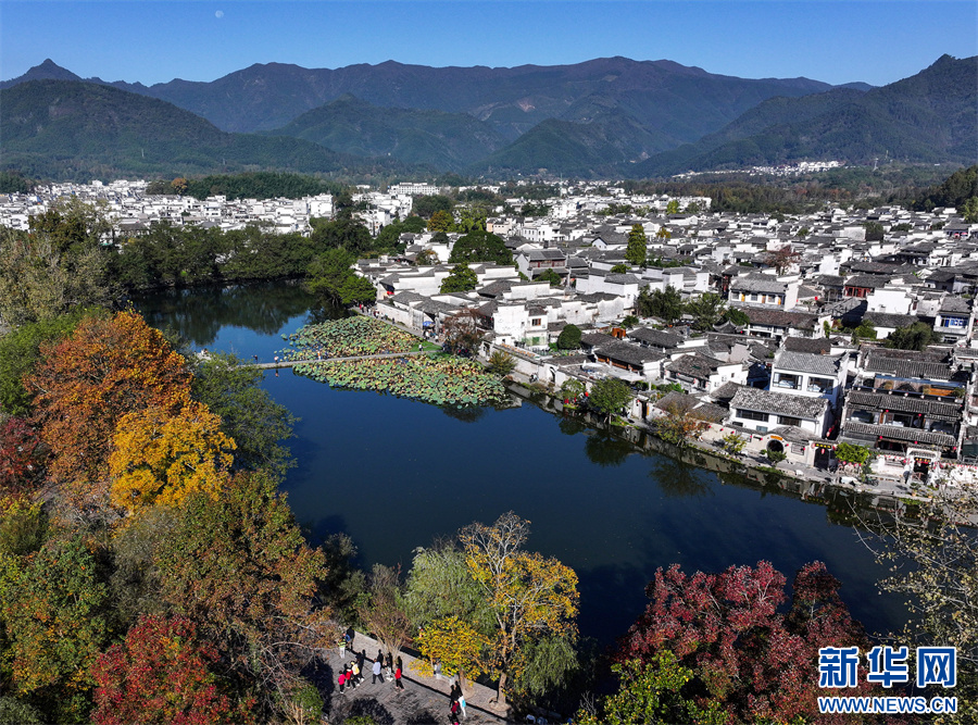 11月1日,在安徽省黃山市黟縣宏村拍攝的秋日風景。(無人機照片)
