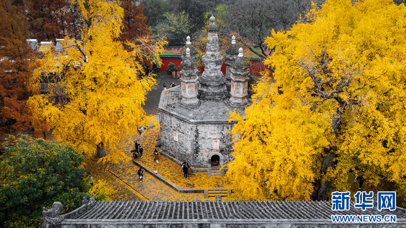 近日,佇立在湖北襄陽廣德寺內(nèi)的銀杏古樹迎來最佳觀賞期,吸引了眾多游客前來拍照打卡。 楊瀟攝 新華網(wǎng)發(fā)