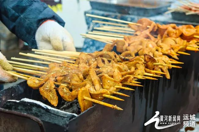 人氣旺的不僅是文化園廣場,在文化園的小吃街,有三十多家美食攤位吸引游客前來打卡、品美食。炸油糕、烤面筋、糖葫蘆等黃河金三角特色小吃數(shù)不勝數(shù),每一個攤位前都擠滿了游客?!斑@里不僅可以品美食,還可以購買平陸本地特產(chǎn),比在老家趕集還熱鬧?!眮碜院幽系膹埾壬蛴浾弑硎?。游客們穿梭在各個攤位間,挑選心儀的美食,匯聚起濃濃煙火味,滿足了群眾的“舌尖之歡”。