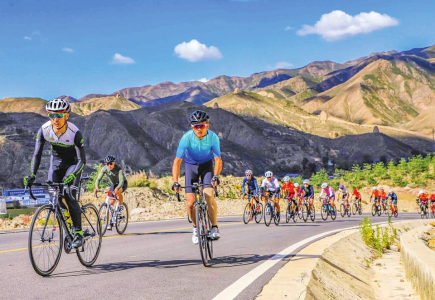 2023年9月,天鎮(zhèn)縣在長(zhǎng)城一號(hào)旅游公路舉行騎行大賽。 山西省交通運(yùn)輸廳供圖