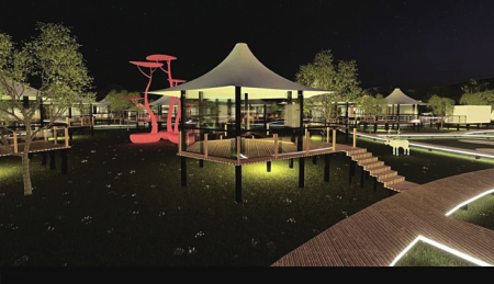 游玩至傍晚需要一處別樣的休憩之所,在鸛雀樓景區(qū)有一家很值得住一晚休息放松的民宿,那就是鸛棲苑民宿酒店。這個(gè)酒店以鸛雀樓的花海為依托,展開(kāi)建筑的單體布局,又通過(guò)陣列組合形成一個(gè)大花瓣,客房之間用棧道連接,白天賞花海,夜晚觀花燈,好不自在。酒店還有一個(gè)可以露營(yíng)的營(yíng)地,緊鄰黃河還可以燒烤。在接待中心頂層還有一個(gè)觀光平臺(tái),有卡座可以休憩和賞景。夜晚的彩燈亮起,繁花縈繞,讓人仿佛置身仙境。