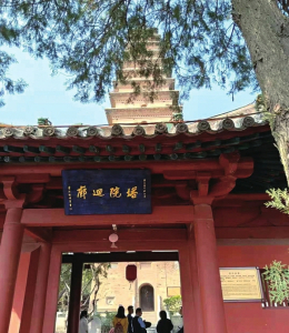 在山西永濟(jì)蒲州鎮(zhèn)西廂村峨嵋塬上的普救寺,是《西廂記》的發(fā)生地,該寺始建于唐朝武則天時(shí)期,原名西永清院,為一座佛教十方禪院。在普救寺的西軸線(xiàn)上,屹立著一座古樸典雅的磚塔,原名舍利塔,后因?yàn)椤段鲙洝分袕埳痛搡L鶯的浪漫愛(ài)情故事發(fā)生在塔下,故現(xiàn)在又稱(chēng)“鶯鶯塔”。
