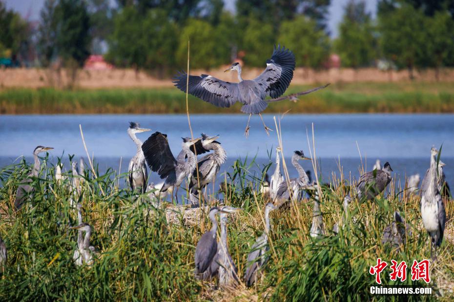 成年蒼鷺正在向幼鳥(niǎo)展示飛行本領(lǐng)。6月,內(nèi)蒙古托克托縣黃河濕地碧水蕩漾、鳥(niǎo)語(yǔ)花香,大批在此“安家”的蒼鷺迎來(lái)繁衍生息的關(guān)鍵季節(jié)。清晨,成年蒼鷺們?yōu)橛坐B(niǎo)成長(zhǎng)開(kāi)啟了一天的忙碌,它們或靜待水面狩獵,或帶幼鳥(niǎo)展翅學(xué)飛,或攜食歸巢反哺……
