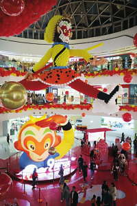 1.在解放路萬達(dá)廣場內(nèi),兩個(gè)巨大的1961年版《大鬧天宮》美猴王造型吸引眾多市民打卡留念。