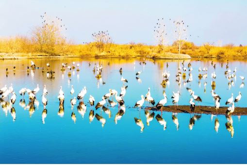 1月10日,鳥兒在江蘇興化里下河國(guó)家濕地公園內(nèi)棲息、覓食。新華社發(fā) 周社根攝
