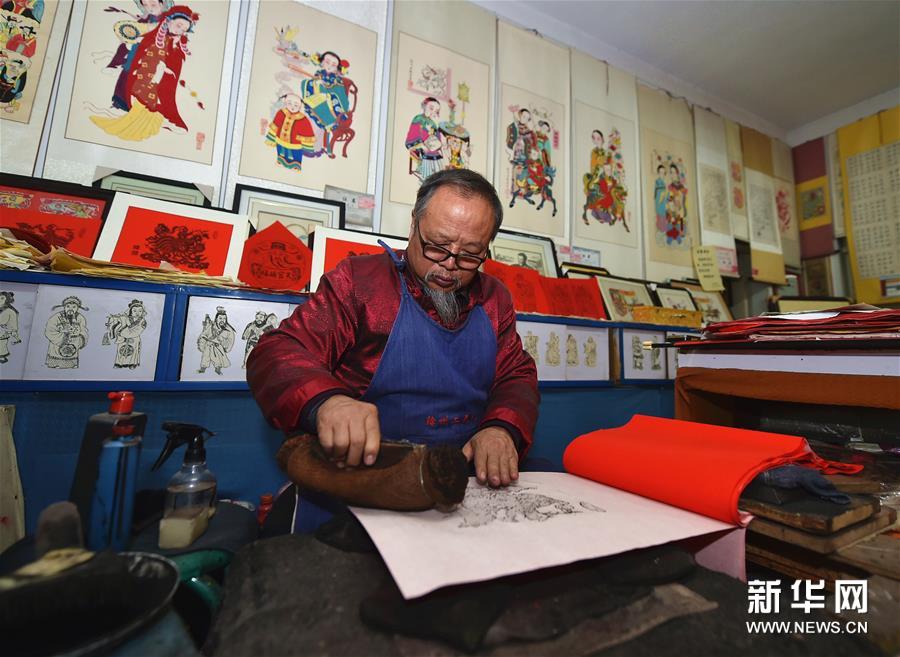 春節(jié)期間,山西省新絳縣的絳州木版年畫傳承人吳百鎖忙得不可開交,來購買“吉祥如意”“雄雞一唱天下白”等主題年畫的顧客絡繹不絕。山西省非物質(zhì)文化遺產(chǎn)絳州木版年畫發(fā)端于宋金,興盛于明清,從選料到雕刻再到上色都非常講究,一幅年畫的制作需要七八道精細工序。隨著時代的變遷,目前已鮮有專職雕刻、印制年畫的匠人。擁有嫻熟雕刻技藝的吳百鎖在傳承傳統(tǒng)工藝的基礎(chǔ)上,積極創(chuàng)作現(xiàn)代題材的作品,希望通過自己的創(chuàng)新讓更多少年兒童了解并愛上木版年畫,讓這門幾乎失傳的技藝綻放新的光彩。新華社記者 曹陽 攝