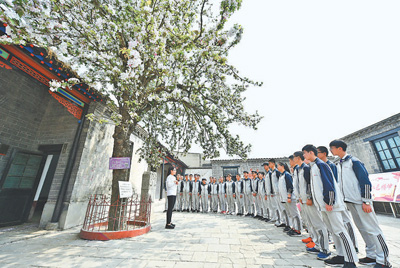 | 4月4日,河北省南宮市豐翼中學(xué)學(xué)生來到八路軍129師東進縱隊司令部舊址,開展憶英烈活動。 趙永輝攝(影像中國) |