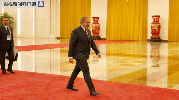 △前來與習(xí)近平會面的亞美尼亞總理帕什尼揚(yáng)。(央視記者許永松拍攝)