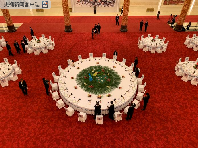 △習(xí)近平發(fā)表祝酒詞的講臺。(央視記者張宇拍攝)