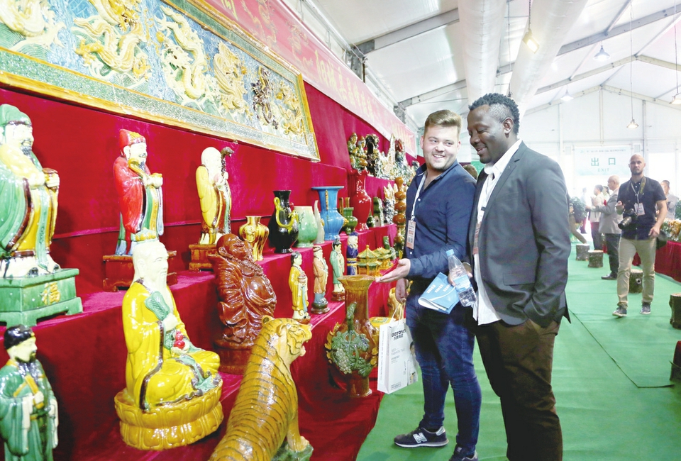 外國客商參觀陽城縣琉璃產品。 宋岳庭 攝