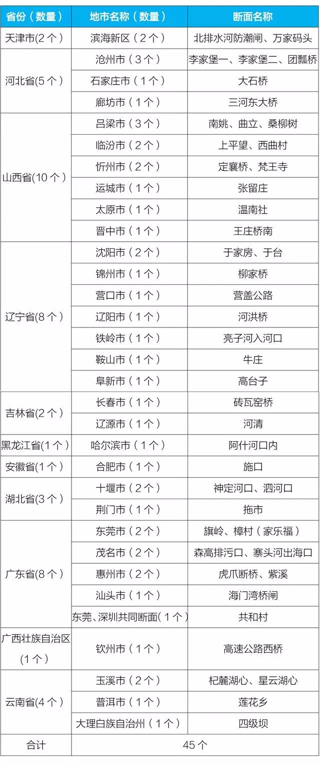 1-5月平均及5月份單月均為劣Ⅴ類的國控?cái)嗝婀灿?jì)45個(gè),數(shù)量較多的省份是:山西(10個(gè))、遼寧(8個(gè))、廣東(8個(gè))、河北(5個(gè));數(shù)量較多的地市是:呂梁(3個(gè))、滄州(3個(gè))。