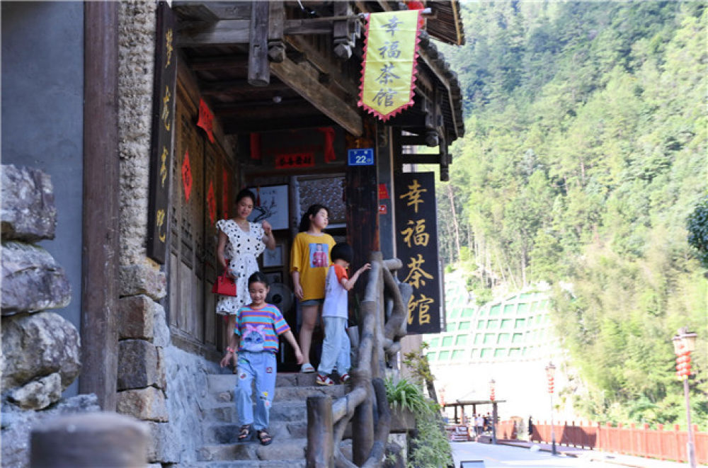 游客在下黨村“幸福茶館”前(8月8日攝)。新華社記者 林善傳 攝 下黨鄉(xiāng)“植入消費(fèi)式扶貧理念,推出中國首個扶貧定制茶園”的做法,成為國務(wù)院扶貧辦精選推廣的典型案例之一。 多年來,下黨探索形成了黨建促扶貧、定制促扶貧、品牌促扶貧、旅游促扶貧、金融促扶貧“五種扶貧模式”。 “樹信心、找路子、聚合力,這就是下黨發(fā)生巨變的秘密?!比~忠強(qiáng)說。 曾多年擔(dān)任村委會主任的王菊弟說,下黨之窮,窮在“不通”——路不通、貨不通、思想不通。村民雖有強(qiáng)烈發(fā)展愿望,但“等靠要”思想嚴(yán)重。扶貧先扶志,共產(chǎn)黨員帶頭。近年來,下黨村成立茶葉生產(chǎn)技術(shù)黨小組、農(nóng)家樂和民宿服務(wù)黨小組等,采取專家授課、遠(yuǎn)程教育、創(chuàng)業(yè)帶頭人培訓(xùn)等方式提高村干部和黨員帶頭致富能力。