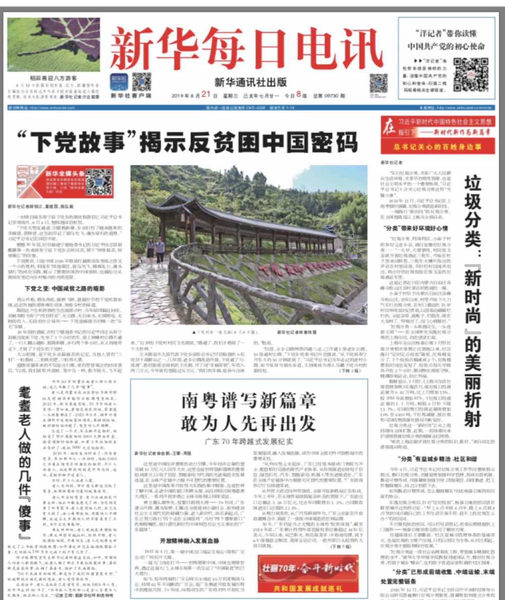 圖為2019年8月21日《新華每日電訊》頭版截圖。 (責(zé)任編輯:李冬梅) |