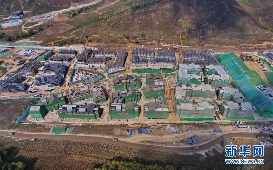 這是主體結構正式封頂?shù)?022年北京冬奧會張家口冬奧村(9月30日無人機拍攝)。 新華社記者楊帆攝