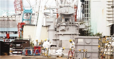 圖為二〇一七年十月十二日,施工人員在日本福島第一核電站內(nèi)進行拆除作業(yè)。 新華社發(fā) |