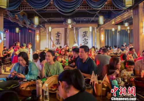 黃金周江蘇“夜生活”貢獻(xiàn)過半假日收入。圖為《江湖盛宴》武俠主題餐秀人流攢動(dòng)。 唐娟 攝