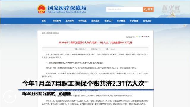 【簡介】記者8月31日從國家醫(yī)保局獲悉,2025年1月至7月職工醫(yī)保個人賬戶共濟(jì)人次2.31億,金額304.57億元。