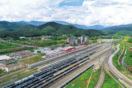 9月21日,中老鐵路上的貨運(yùn)列車在磨憨站通過。記者獲悉,中老鐵路開通運(yùn)營以來,截至9月19日,全線累計(jì)開行貨物列車突破6萬列,貨運(yùn)量超6760萬噸,其中跨境貨物運(yùn)輸突破1500萬噸。