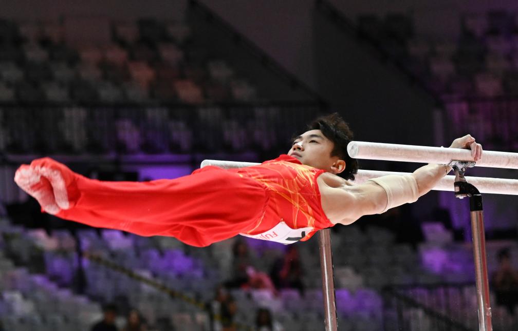 奧運(yùn)冠軍鄒敬園在男子雙杠資格賽中曾拿到本屆世錦賽開賽后的單項(xiàng)最高分15.466分。當(dāng)天的雙杠決賽,鄒敬園6.0分的難度動作依然擁有絕對統(tǒng)治力,最終收獲15.300分,穩(wěn)坐第一。他的成績領(lǐng)先亞軍、日本選手角皆友晴0.800分。
