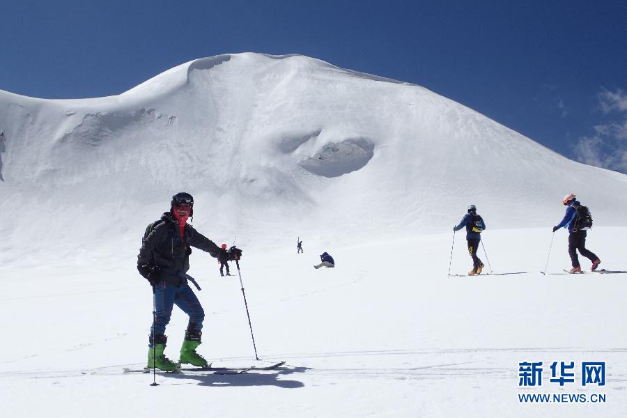 ↑記者第一次見到劉百靈是在第十六屆西藏登山大會(huì)滑雪登山項(xiàng)目的營地——洛堆峰雪線處,海拔5600米。劉百靈膚色黑得發(fā)亮,與身邊長年從事高山訓(xùn)練的藏族教練無異。但細(xì)問起來,他說自己生在湖南,現(xiàn)居杭州,是地道的南方人。 因?yàn)閷敉膺\(yùn)動(dòng)尤其是對滑雪的執(zhí)著,劉百靈的膚色變了,過起了旁人眼中的另一種人生,也成了“異類”。但他卻感謝自己成了“異類”。這是10月4日,滑雪愛好者、“體育旅游”探索者劉百靈(左)在位于西藏自治區(qū)當(dāng)雄縣羊八井鎮(zhèn)的洛堆峰雪坡上練習(xí),此處海拔約5700米。遠(yuǎn)處的山峰是海拔7048米的窮母崗日峰。 新華社發(fā)