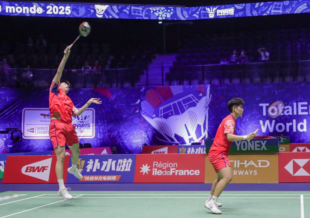 8月27日,中國(guó)組合馮彥哲(左)/黃東萍在比賽中。新華社記者 張帆 攝