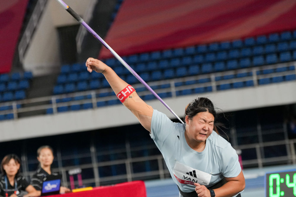 9月7日,中國(guó)選手嚴(yán)子怡在女子標(biāo)槍比賽中。新華社記者 鞠煥宗 攝