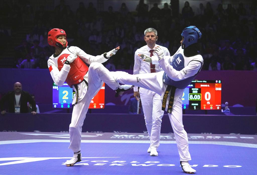 30日進(jìn)行了女子53公斤級(jí)和男子74公斤級(jí)比賽,中國隊(duì)的蔡兆勛止步男子74公斤級(jí)八強(qiáng),張楚玲闖進(jìn)女子53公斤級(jí)半決賽,但0:2不敵沙特阿拉伯選手阿布塔利布,獲得一枚銅牌。賽后她認(rèn)為自己的首次世錦賽之旅“不及格”,她說:“對(duì)于一些技戰(zhàn)術(shù)的運(yùn)用,感覺做得還是不夠好。第一次和很多高手過招,內(nèi)心還是有壓力的,感覺自己在節(jié)奏上跟她們差得還是有點(diǎn)多,在快節(jié)奏對(duì)抗的時(shí)候有點(diǎn)頂不住?!?/p>