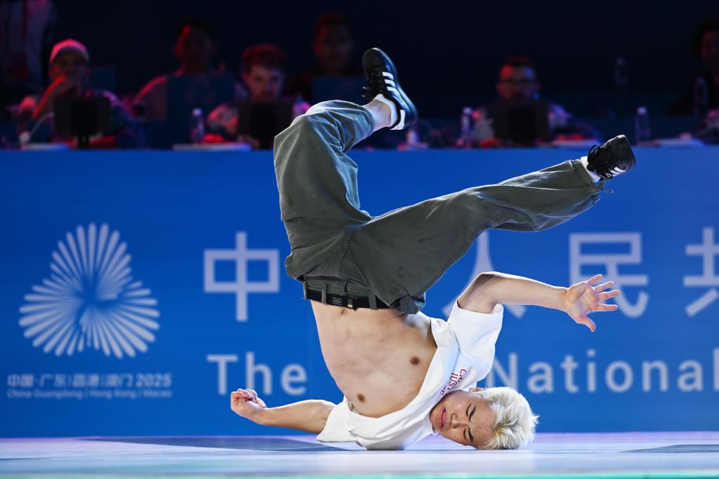 霹靂舞男子組冠軍被湖北隊(duì)王瑞苗獲得,成都世運(yùn)會(huì)冠軍亓祥宇和上海隊(duì)商小宇分獲二、三名。