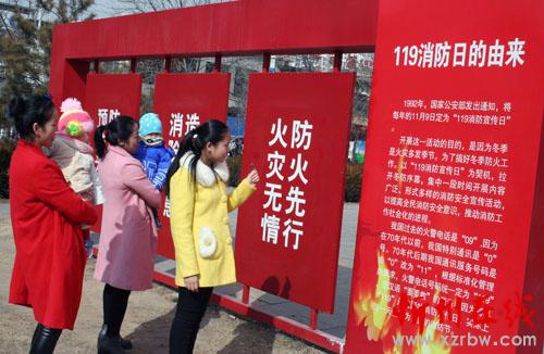 2月25日,原平市民正在119消防文化主題公園觀看、了解、學習消防安全與火災防范知識。為進一步推進社會化消防宣傳工作,原平市為廣大市民打造了一個寓教于樂、主題鮮明的消防宣傳教育平臺。整個公園具有鮮明的消防主題特色,集觀賞性、教育性為一體,可使廣大市民在休閑娛樂中,了解如何防范、應對火災發(fā)生,以及如何進行火場逃生等基本常識。(趙春曉 攝)