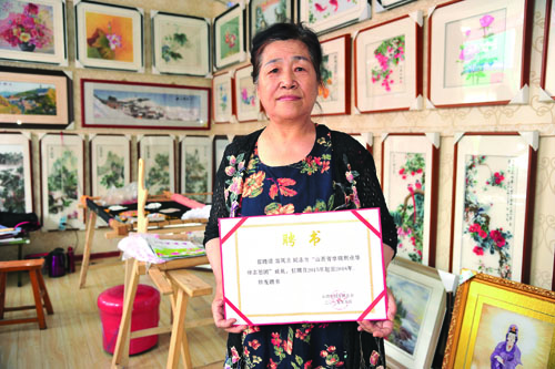 高鳳蘭的學(xué)生正在制作高錦繡作品