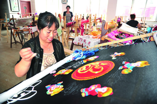 高鳳蘭作為雁繡“非遺”傳承人,公司創(chuàng)辦于2009年,主要從事挖掘、研究、傳承、開發(fā)雁門關(guān)地域民間傳統(tǒng)手工刺繡工藝,同時(shí)學(xué)習(xí)引進(jìn)蘇繡工藝精華,新創(chuàng)雁繡和高錦繡藝術(shù)。各種手工繡品做工精細(xì),寓意深刻,情趣盎然,技術(shù)含量高,實(shí)用性觀賞性強(qiáng),達(dá)到了“繡花花生香,繡鳥能聞聲,繡虎能奔跑,繡人能傳神”的最佳境界,一大批弘揚(yáng)傳統(tǒng)文化、紅色文化、廉政文化、法治文化的繡品投放市場好評如潮,供不應(yīng)求。現(xiàn)已無償培訓(xùn)當(dāng)?shù)睾屯獾剞r(nóng)村婦女5000多人,不僅為傳承雁繡和高錦繡工藝、發(fā)展文化旅游產(chǎn)業(yè)壯大了隊(duì)伍培養(yǎng)了人才,而且為弘揚(yáng)雁門文化和精神文明立下了汗馬功勞,同時(shí)也讓昔日圍著鍋臺轉(zhuǎn)的農(nóng)村婦女走上了創(chuàng)業(yè)致富的道路,不少婦女年創(chuàng)收兩萬多元。今年8月4日至9日,她將攜帶精心制作的高錦繡作品《金猴送福》、《五福捧壽》、《鹿鶴同春》、《金玉滿堂》、《吉祥中華》等,應(yīng)邀參加在大同市舉辦的第三屆“三晉巧姐”手工藝作品展,力爭拿大獎(jiǎng)。(石俊文 劉睿)