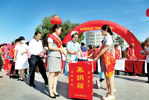9月1日,《中華人民共和國慈善法》(以下簡稱《慈善法》)正式實(shí)施,9月5日是我國首個(gè)“中華慈善日”。這天上午,忻州市慈善總會(huì)在忻州城區(qū)日月廣場舉行規(guī)模盛大的集會(huì),向廣大市民宣傳普及國家《慈善法》的相關(guān)知識(shí)。中國公益在線忻州愛心團(tuán)的志愿者,同濟(jì)醫(yī)院、新世紀(jì)女子醫(yī)院、中西醫(yī)結(jié)合醫(yī)院、忻州肝泰肛腸醫(yī)院的醫(yī)務(wù)人員參加了宣傳活動(dòng),并慷慨解囊,與市慈善總會(huì)工作人員一道參與了現(xiàn)場的慈善捐款活動(dòng)。