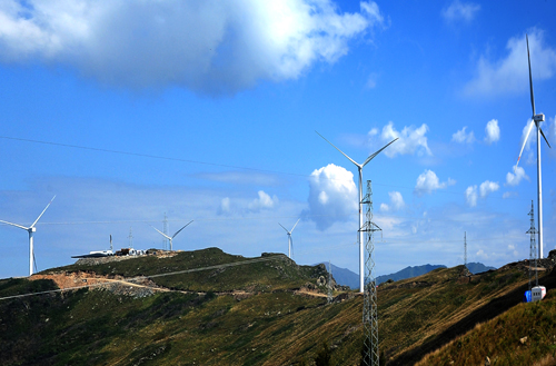 安裝在大山頂上的風(fēng)力發(fā)電機(jī)組