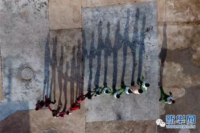 10月25日,12歲的苗國梁(右一)和同學們在操場上玩耍。苗國梁2015年9月來到學校,經(jīng)過一年多的時間,苗國梁已融入了學校這個大家庭。